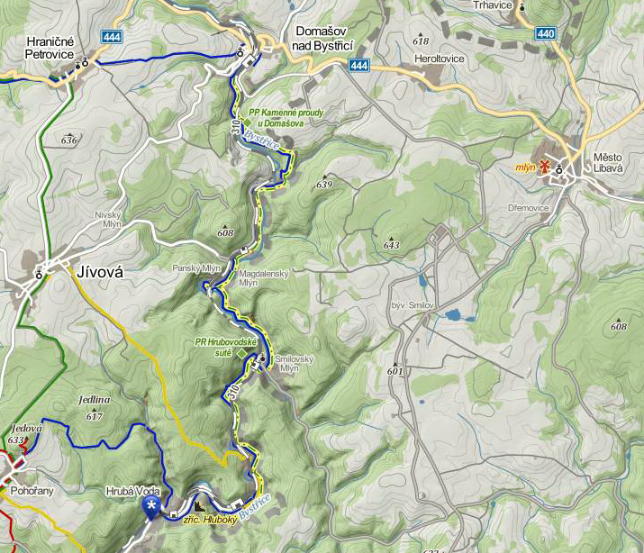 Říkal jsem si že jsme společně dlouho nic nepodnikly a protože se nám blíží květnové dny oslav prací, konců válek a svobody, které se přímo vybízí k nějakému pěknému výletu, rozhodl jsem se 8.5. vyrazit na výšlap téměř panenskou přírodou na samém okraji VVP Libavá a to údolím říčky Bystřice z Domašova nad zmiňovanou řekou do Hrubé vody, přičemž tomuto pochodu by předcházel sraz právě v Hrubé vodě a z tama vláčkem úžasným údolím říčky Bystřice do cíle a vlastně startu celé výpravy do Domašova. Celá trasa má asi 15 km , vine se jak had nahoru , dolu, vlevo, vpravo úžasným údolím , no prostě.. mám to tam rád a tak si říkám, že se o tento kousek naší krásné země podělím J . Dva háčky to má, a to hospodu v Domašově a potom až v Hrubé vodě, takže cestou jen z vlastních zásob a vlastně ještě jeden a tím je časové omezení , které nás nutí se dostat do místa zahájení a nakonec ukončení v přesně stanoveném časovém termínu , neb vláček nečeká. Níže uvádím dva , které připadají v úvahu .